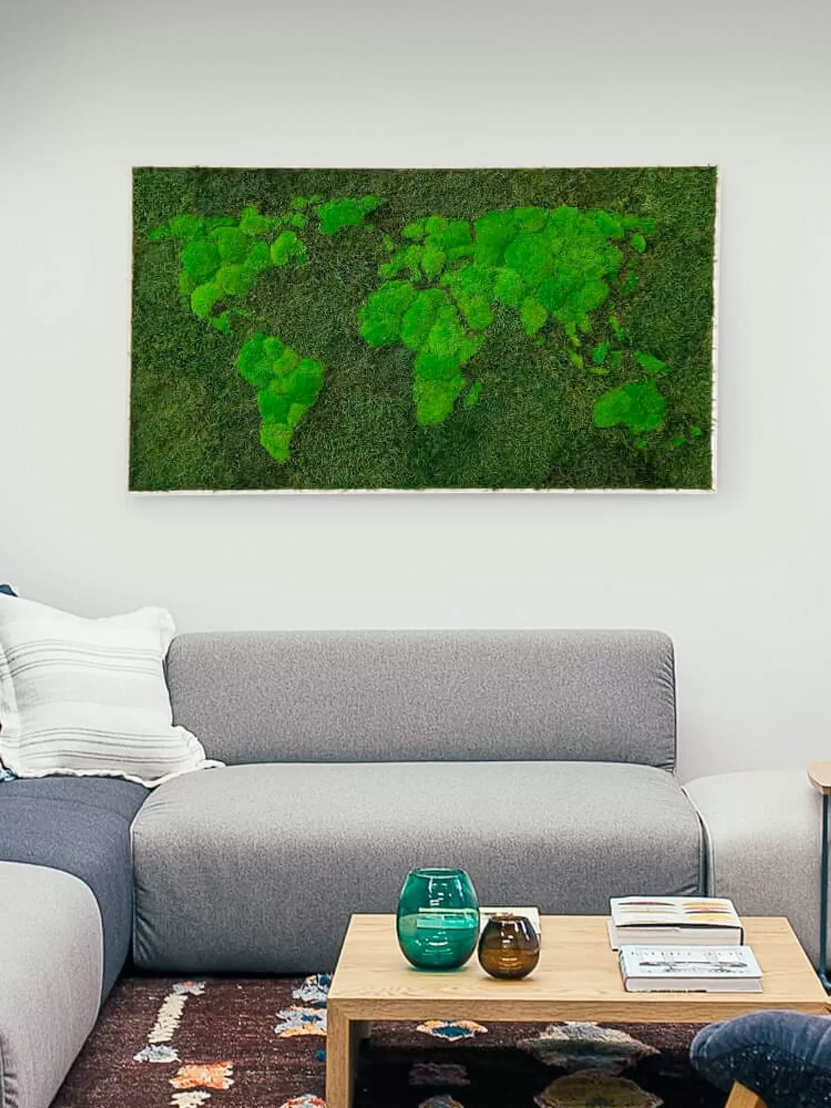 Each map combines ball moss (scoop) and forest moss for a natural, smooth 3D effect, featuring rich tones of light and dark green for a realistic, organic look. All plants and mosses are 100% natural and organic, carefully stabilized to preserve their fresh, vibrant appearance for years to come. Plus, we offer free home delivery.
