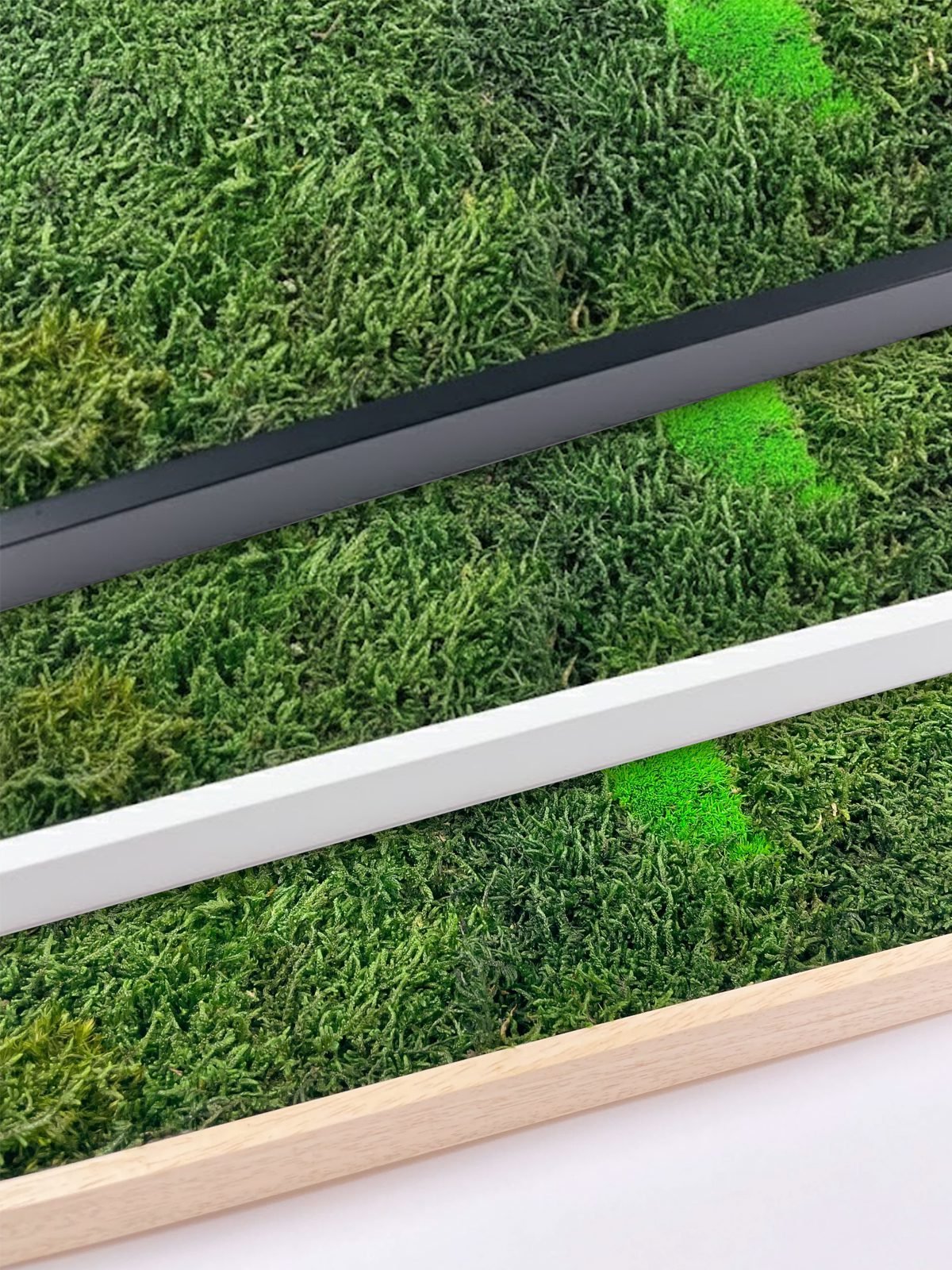 The stabilization process ensures long-lasting softness, color, and texture. The moss doesn’t grow, requires no sunlight, and can even be displayed in darker spaces such as bathrooms. It’s hypoallergenic, free from chemicals, and naturally absorbs both sound and humidity—making it a perfect solution for reducing echo and noise.