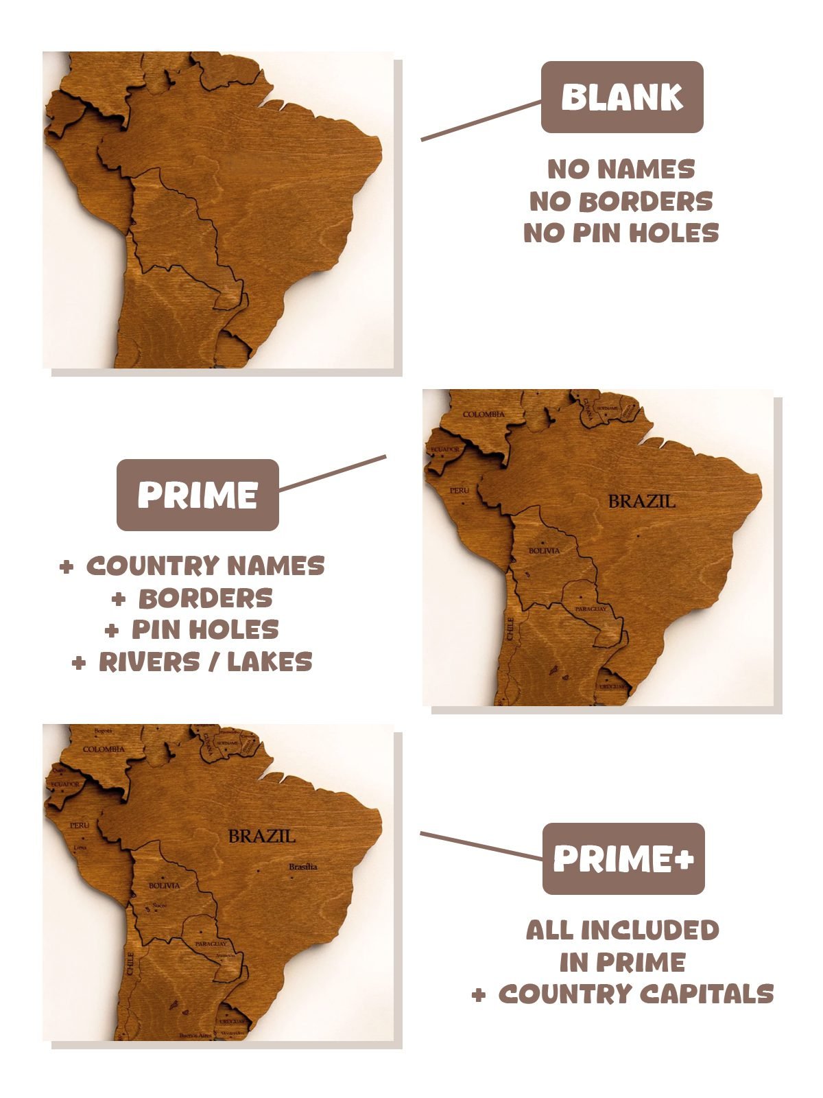 Premium Luxury 3D Wooden World Map Multi WalnutPremium Luxury 3D Wooden World Map – Multi Walnut