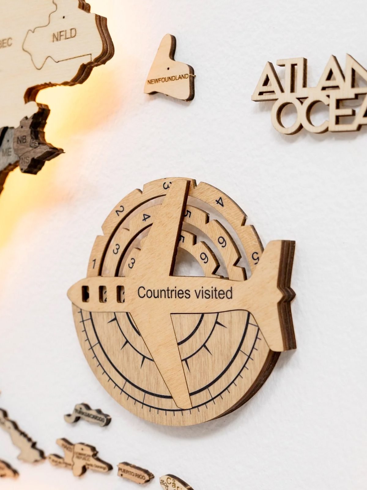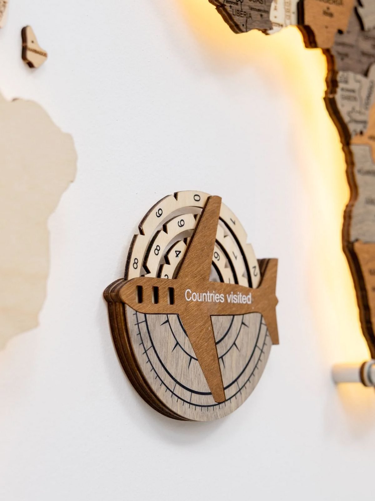 This beautifully detailed wooden world travel map lets you mark visited countries, plan future trips, and visualize your adventures in real time. Made from high-quality wood, the map offers depth, texture, and elegance to any interior, blending decor with meaning.