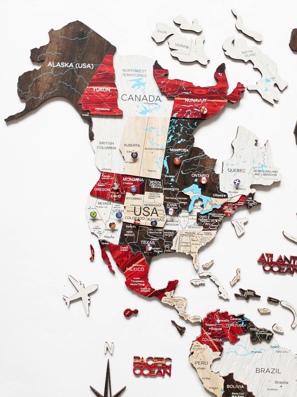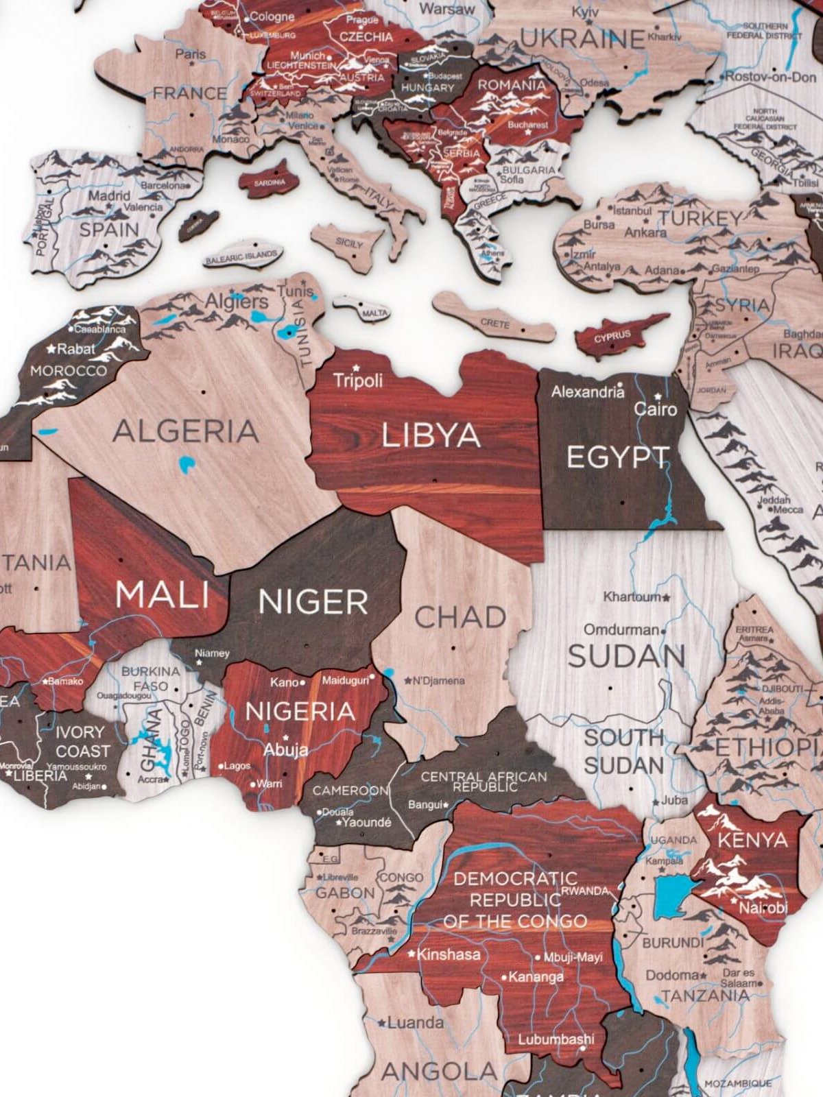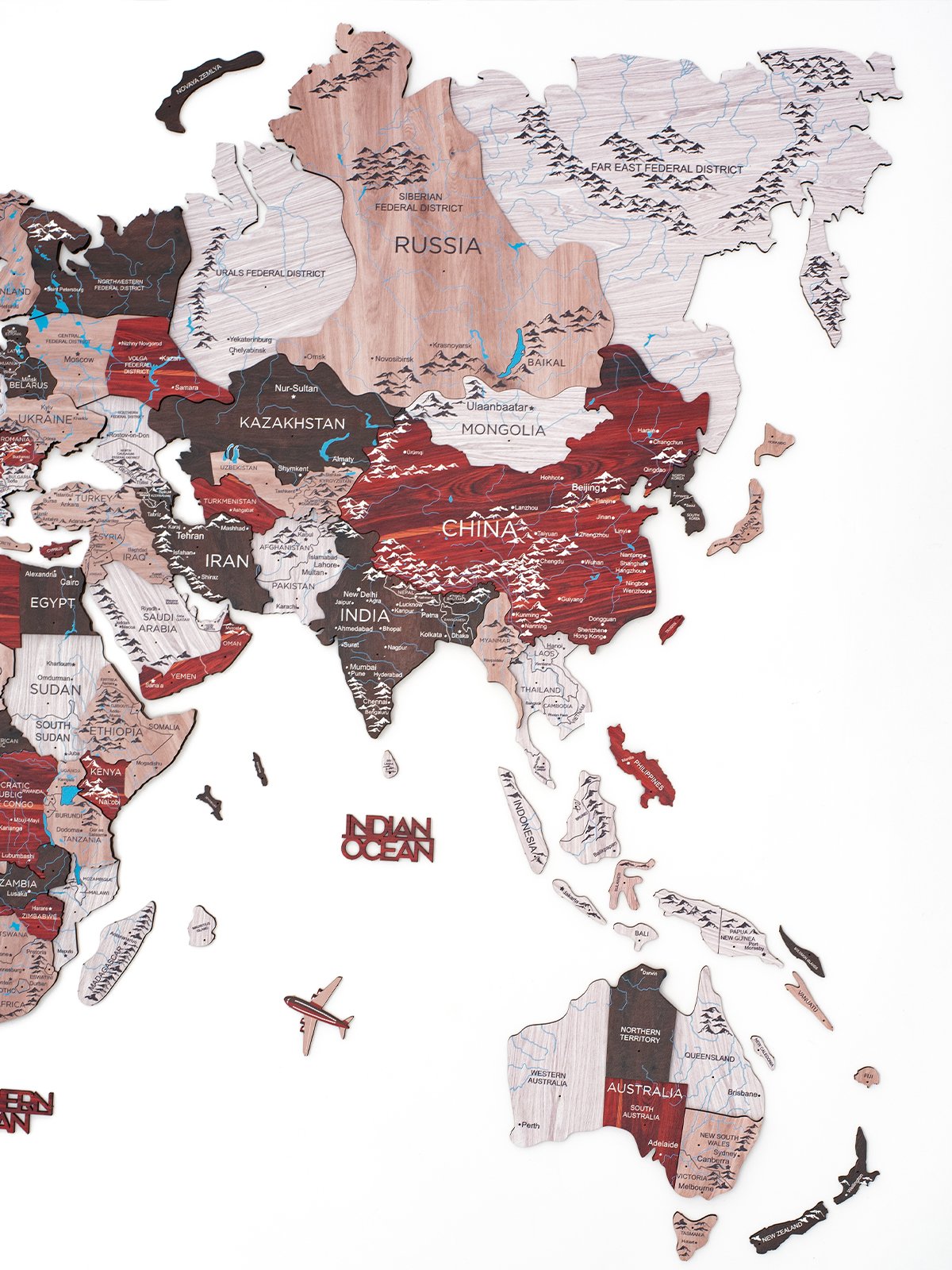 Premium 3D Coloured Wooden World Map UrbanPremium 3D färgad världskarta i trä – Urban